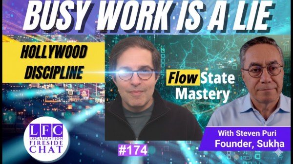 Localization Fireside Chat Episode 174 Watch the full interview: https://youtu.be/5m2dzQaDLgcIn this episode of the Localization Fireside Chat, host Robin Ayoub talks with Steven Puri, Founder of The Sukha Company and a former Hollywood film executive, about focus, discipline, and what it really takes to get meaningful work done in today’s world.Steven’s story bridges two worlds:... Continue Reading →