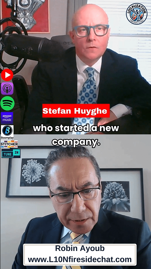 Join Robin Ayoub and Stefan Huyghe in episode #54 of the Localization Fireside Chat as they delve deep into the evolving world of localization, artificial intelligence (AI), and the language industry’s dynamic landscape. This podcast episode offers a comprehensive exploration of several critical topics shaping the future of localization and multilingual communication.