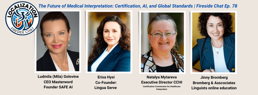 Introduction: In a recent episode of the Localization Fireside Chat, industry leaders gathered to discuss the critical role of medical interpretation in healthcare. The conversation, featuring Natalia Mytareva from the Certification Commission for Healthcare Interpreters (CCHI), Jinny Bromberg from Bromberg & Associates, Erisa Hysi from Linguist Survey, and Mila Golovine from Master Word, delved into the nuances of medical interpretation, emphasizing the importance of certification, the challenges of maintaining quality standards, and the evolving role of technology in the field. This blog post summarizes their insightful discussion, highlighting key takeaways and the future direction of medical interpretation.