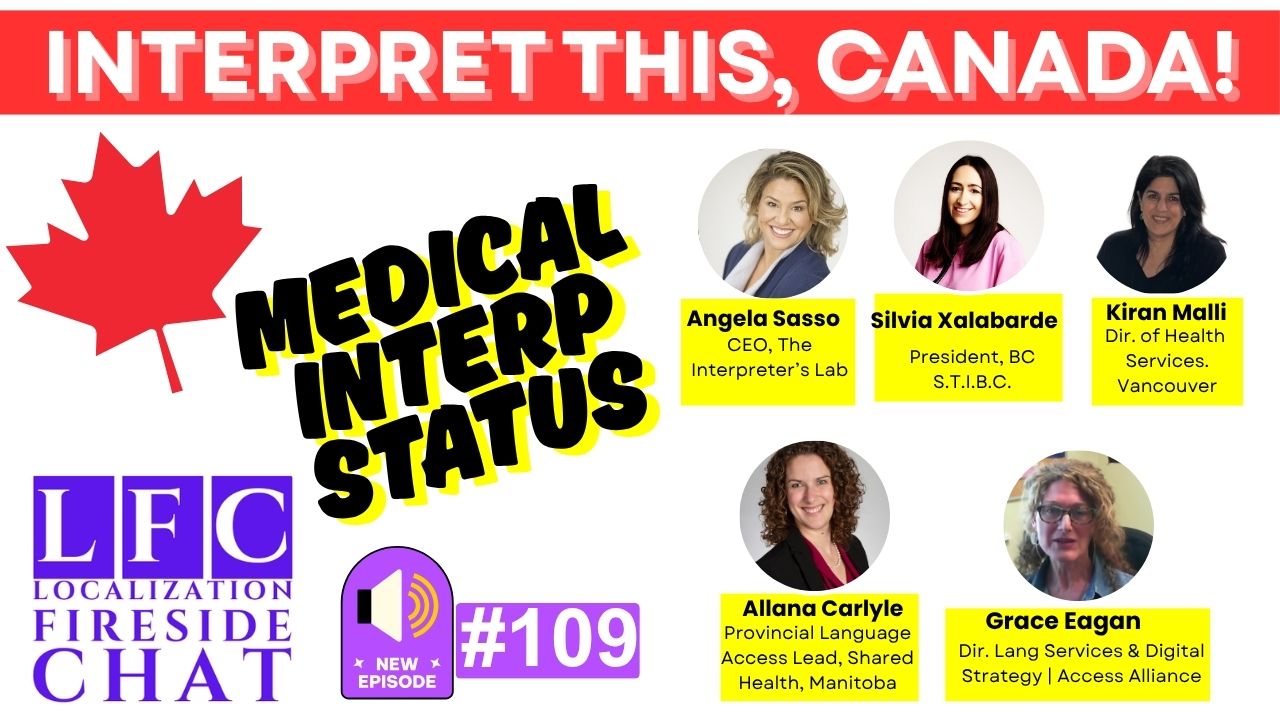 What happens when language rights are guaranteed by law but access fails in practice? In Episode 109 of the Localization Fireside Chat, Robin Ayoub brings together five leading voices from across Canada to explore the state of medical and community interpretation. The guests—Angela Sasso (Interpreter’s Lab), Silvia Xalabarde (STIBC), Kiran Malli (Vancouver Coastal Health), Allana Carlyle (Shared Health Manitoba), and Grace Eagan (Access Alliance)—share powerful frontline insights about a system that is overstretched, undervalued, and far from equitable.